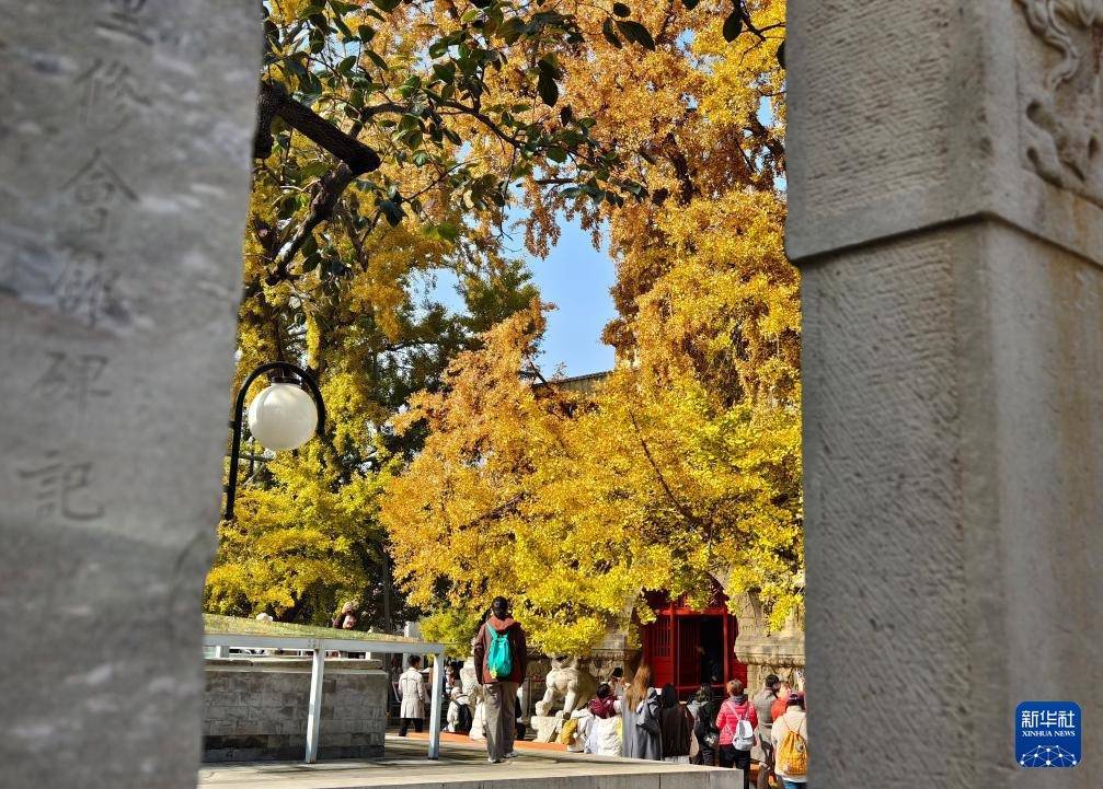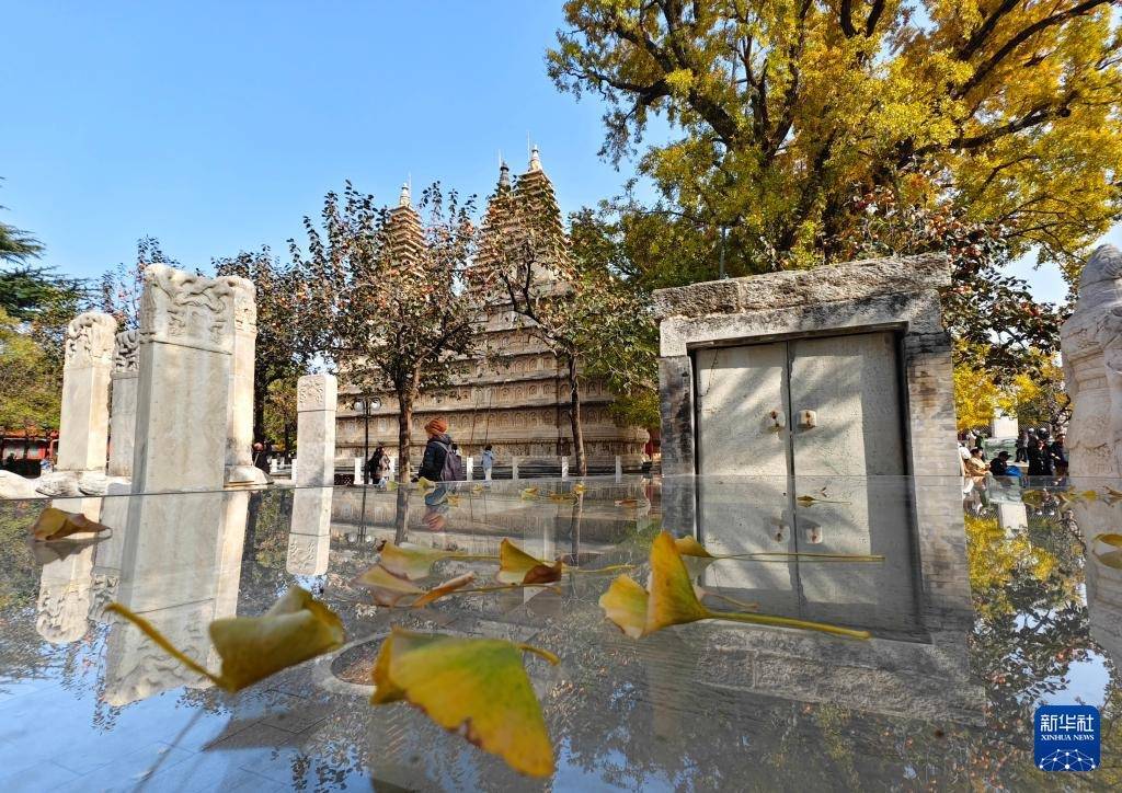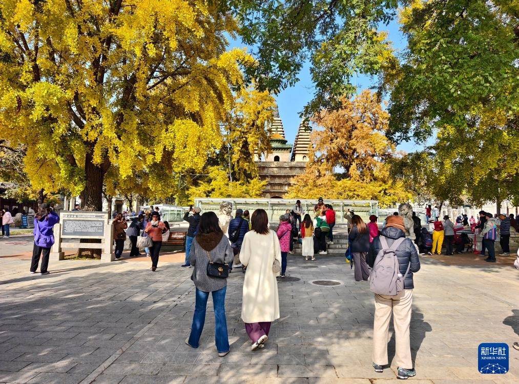 r深秋时节,北京石刻艺术博物馆(也称五塔寺)内银杏尽黄,吸引众多市民、游客前来观赏。