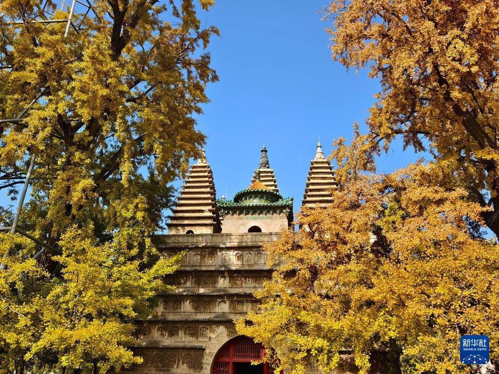 银杏树掩映着北京五塔寺内的建筑(10月31日摄,手机照片)。